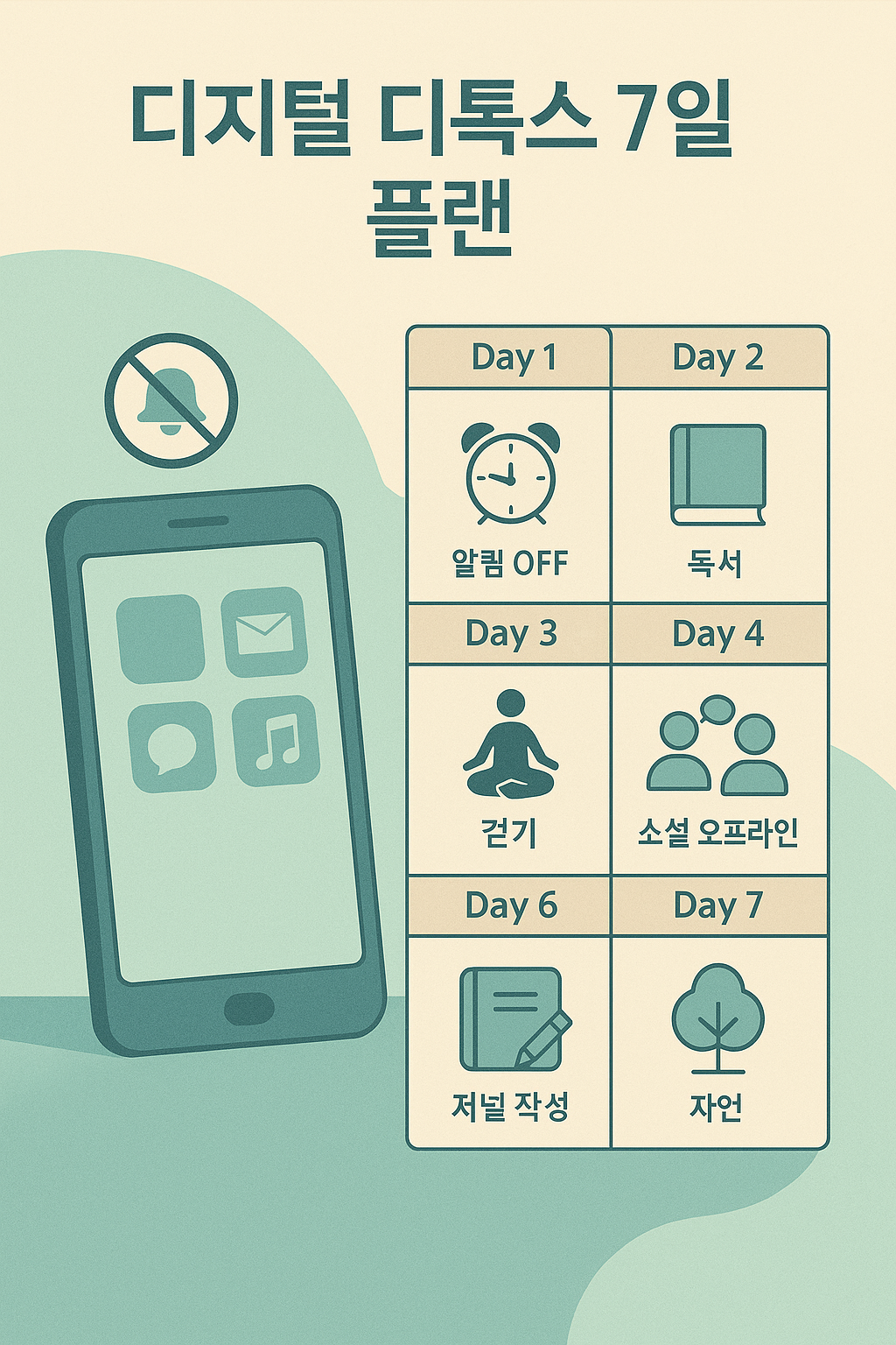 “하루 평균 5시간 이상 스마트폰을 들여다보시나요?” 디지털 디톡스 7일 플랜은 끊임없는 알림·SNS 피로·저하된 수면의 악순환을 단 7일 만에 끊고,